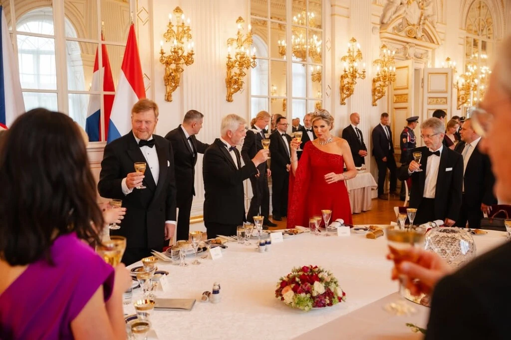 En el Palacio Presidencial de Praga, el primer día de la visita de estado llegó a su fin, y el rey Guillermo Alejandro y el presidente Pavel dieron un discurso en el banquete de estado, donde ambas parejas derrocharon glamour con sus looks de etiqueta.