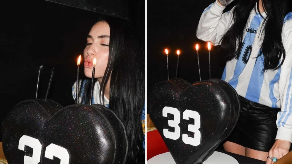 Otro de los guiños futboleros de la celebración fue la particular torta en forma de corazón, que estuvo a cargo de tortografia.ar, con la que la artista pop sopló las velitas y pidió sus deseos para este nuevo año.