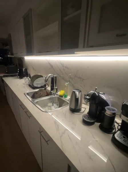- La Cocina: De un blanco inmaculado, con mesadas de mármol y un sistema de iluminación LED que le da un aire futurista.