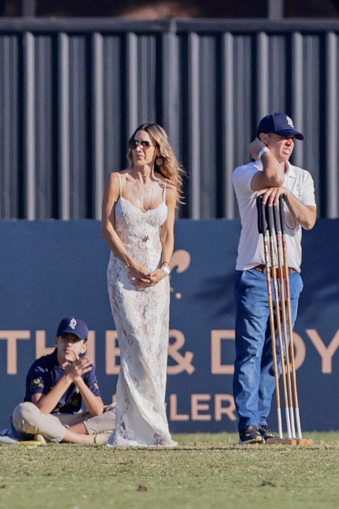 Para complementar su look, la mujer de Adolfo Cambiaso, adoptó un chall de lana con grandes flecos al tono del vestido, una cartera Birkin de Hermês y unos anteojos de sol con marco cuadrado XL.