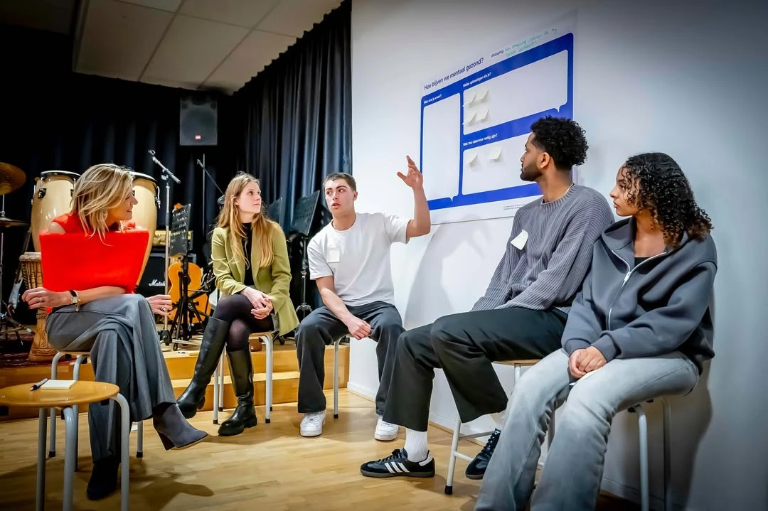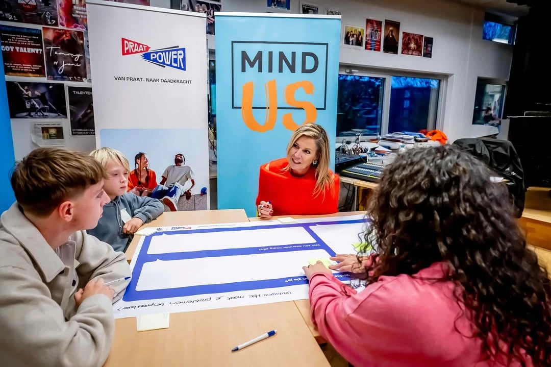 La reina Máxima de los Países Bajos volvió a demostrar que su estilo es una perfecta fusión entre elegancia clásica y audacia contemporánea. En su reciente visita al Haarlem College, donde participó de un encuentro con jóvenes en el marco de la fundación Mind Us (que promueve la salud mental adolescente), la monarca argentina deslumbró con un look que rápidamente se volvió viral por su elección de una blusa de inspiración retrofuturista en tono coral vibrante.