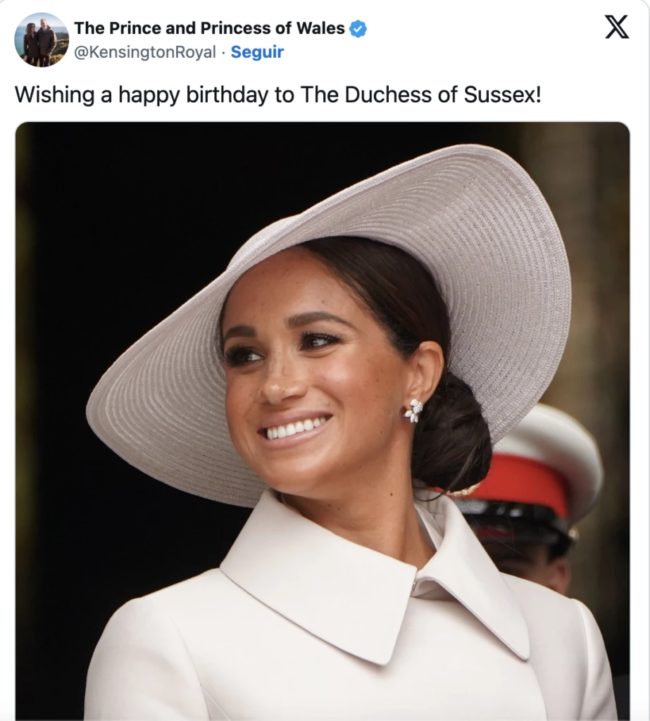 Se hizo evidente que la Corona británica está marcando, aun más, su distancia con la esposa del hijo menor de Carlos III, ya que no felicitaron a la ex actriz por su reciente cumpleaños el pasado 4 de agosto.