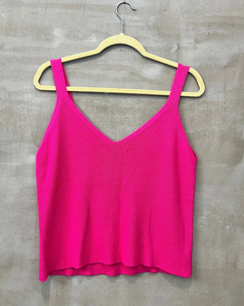 Entre las piezas que más llaman la atención están unas sandalias nude de Sofía Sarkany, un mono azul noche que resuelve cualquier evento y una campera deportiva de Adidas que baja el registro a algo más urbano. El resto son remeras lisas, camisas amplias, algún chaleco rojo, jeans rotos, shorts y pantalones negros que completan ese estilo relajado pero muy pensado que ella suele mostrar en sus apariciones públicas.