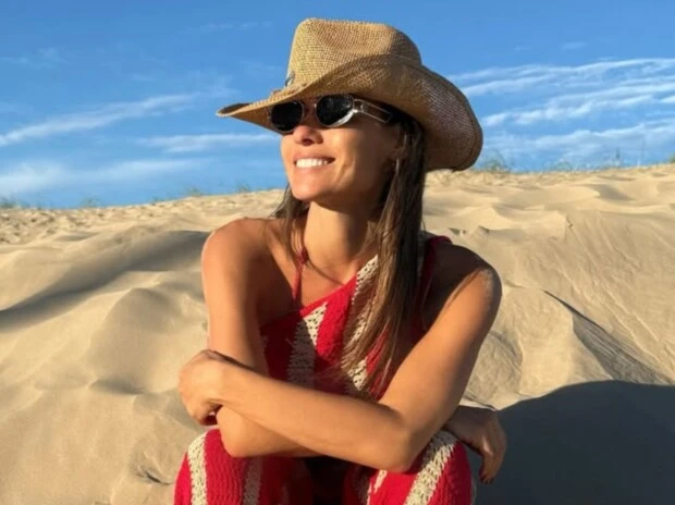 Para completar el estilismo, Pampita sumó un sombrero de ala ancha en tono natural, reforzando el mood beach chic que domina la escena esteña. El beauty look acompaña sin competir: pelo suelto, movimiento natural y una actitud relajada que termina de construir una imagen de verano sofisticado, sin rigideces.
