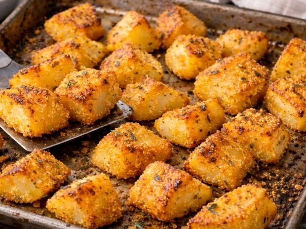 El secreto está en un paso simple pero clave. Al pasar las papas por polenta fina antes de llevarlas al horno, se forma una capa crocante que reemplaza a la fritura, aporta sabor y transforma un acompañamiento común en una guarnición protagonista. El interior queda tierno, mientras que el exterior se dora de manera pareja.