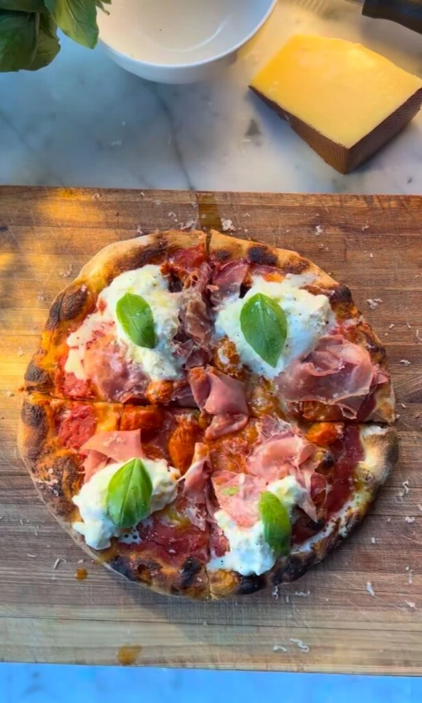 La actriz sugirió terminarla con burrata, tomates confitados, parmesano y hojas frescas de albahaca, aunque aclaró que cada uno puede jugar con sus ingredientes favoritos. El secreto está en la cocción rápida a horno fuerte, que garantiza una textura crocante por fuera y suave por dentro.