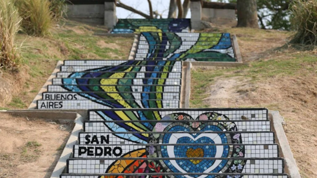 Pero San Pedro va mucho más allá del relax junto al agua. Uno de sus sellos más originales son las escaleras temáticas, que suman color y arte urbano al paisaje. La Escalera de las Flores, con sus mosaicos y tonos vibrantes, se convirtió en una de las postales más compartidas. A ella se suman la Escalera de los Pescadores, que rinde homenaje a la tradición ribereña, y la Escalera de los Colores, otro punto elegido para fotos y paseos con vista al río.