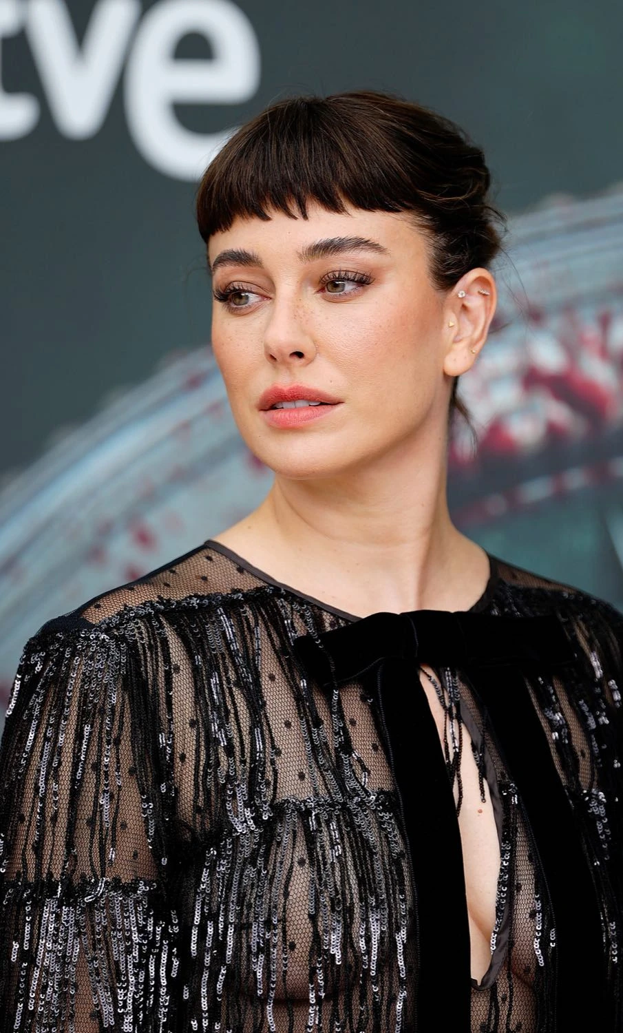En cuanto al beauty look, la famosa actriz española optó por un flequillo recto y pulido y labios naturales, que sumaba un toque de retro glamour minimalista, una microtendencia que busca equilibrar piezas impactantes con maquillaje sobrio y peinados geométricos.