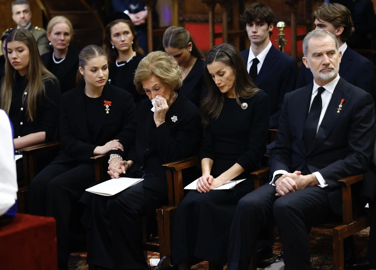 El gesto resultó aún más elocuente durante el funeral: tanto Irene Urdangarin como Victoria Federica tuvieron un rol destacado al portar los almohadones con las condecoraciones de la princesa, un detalle cargado de simbolismo que reflejó la cercanía emocional entre la tía-abuela y ese sector de la familia.
