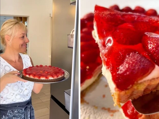 Si buscás un postre fresco, vistoso y fácil de hacer, esta tarta de frutillas es una apuesta segura. Jimena Monteverde compartió una versión práctica, sin horno, con base crocante de galletitas, una capa generosa de dulce de leche, crema batida y frutillas frescas.