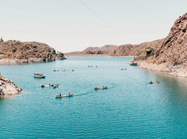 Valle Grande y su inmenso espejo de agua verde esmeralda es una tentación para la práctica de actividades náuticas. Enmarcado por el cañón del Atuel, las montañas y las aguas del río homónimo, se encuentra este paraje que invita al rafting, kayaking o disfrutar de la pesca y de los paseos en catamarán.