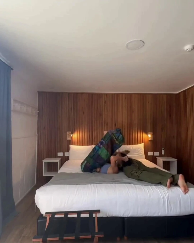 De fondo, mientras se ven imágenes de ambos recorriendo las instalaciones del lugar como un sauna, la pileta, un jacuzzi y un restaurante, se escucha la canción Por mil de Lauta, que en parte de su letra dice: "Por acá todo bien, hoy quiero serte sincero, cómo cambiaste mi vida ni yo me lo creo".
