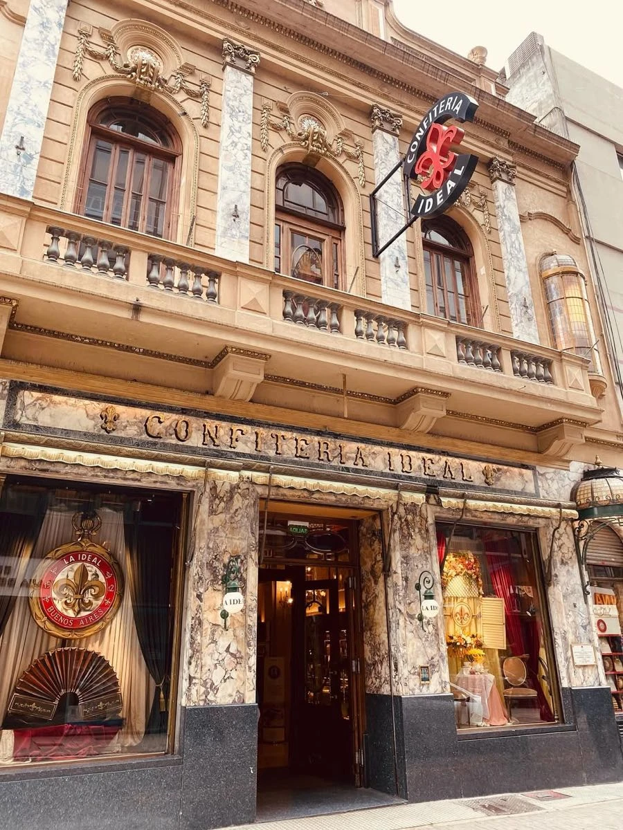 - CONFITERÍA LA IDEAL (Suipacha 384, Microcentro): Un bar notable con un salón majestuoso del 1912 estilo Belle Époque restaurado y reabierto en 2022. Visitado por Carlos Gardel, el presidente Hipólito Yrigoyen era fan de sus clásicas palmeritas.