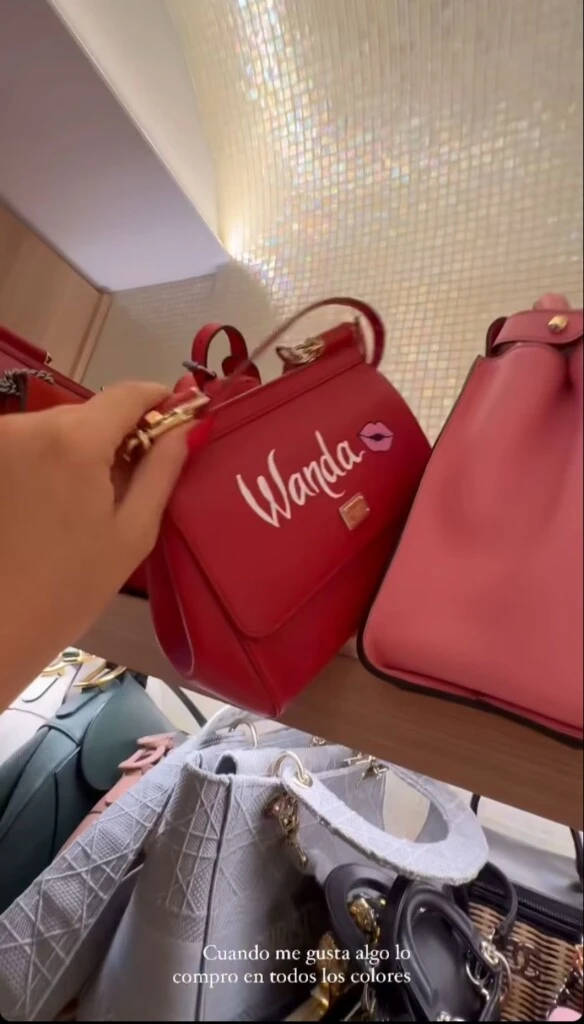 Su fanatismo por la firma francesa de moda es tal que también tiene un apartado de bolsos grandes. Además Wanda contó: "Cuando me mudo no me llevo nada. Entonces me pasa que como las re uso, compré una igual en Milán, en Francia y Turquía. Llegué a tener cuatro iguales y una se la regalé a Zaira. Espero que la use".