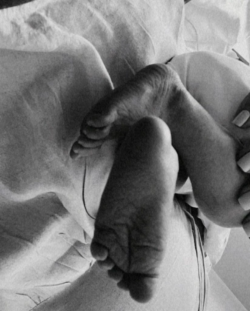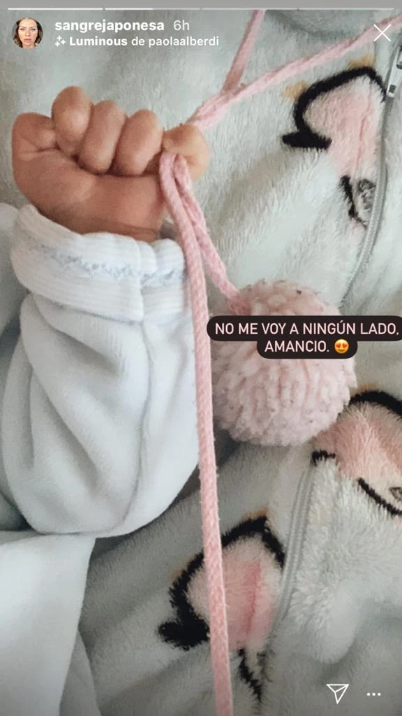 Hoy, sábado, la China compartió nuevos frames de felicidad, como la manito de Amancio y la leyenda de "No me voy a ningún lado" e instantes únicos de colecho, amor y lactancia.