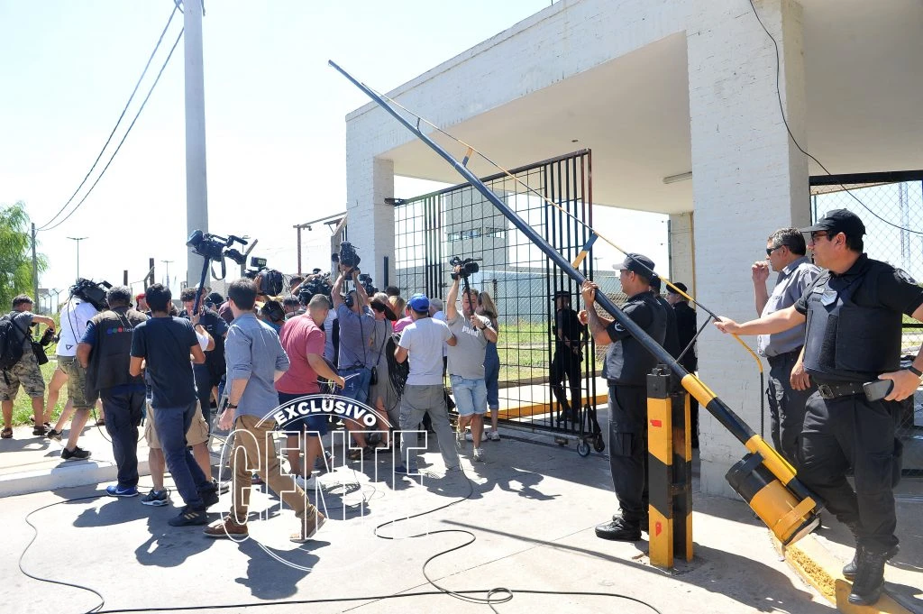 Se acerca Tablado al portón de salida del penal. La prensa se prepara para abordarlo.