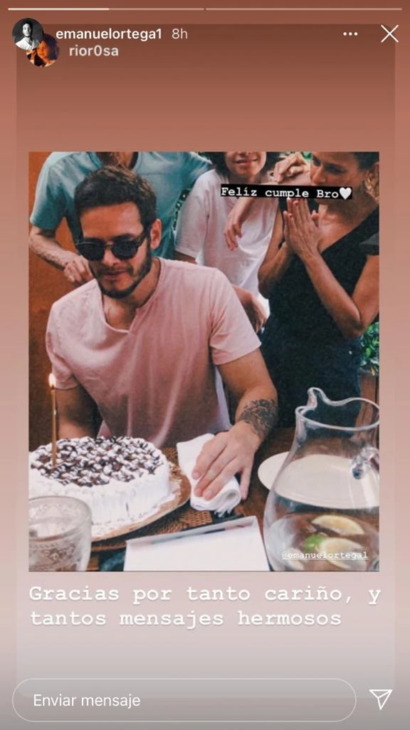 Si bien Emanuel no reposteó la historia que subió Julieta, sí compartió la story subida por su hermana Rosario, donde la música y compositora le escribió: "Feliz cumple, bro".