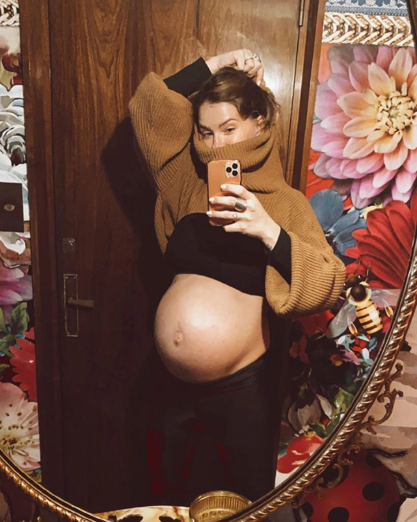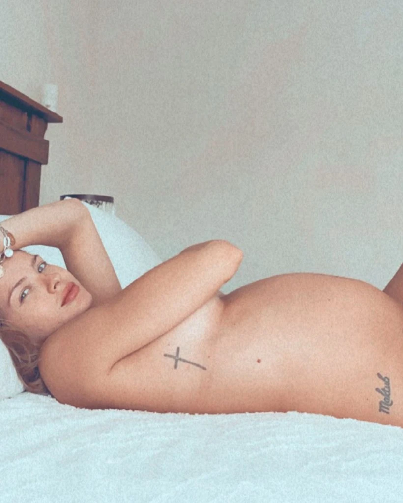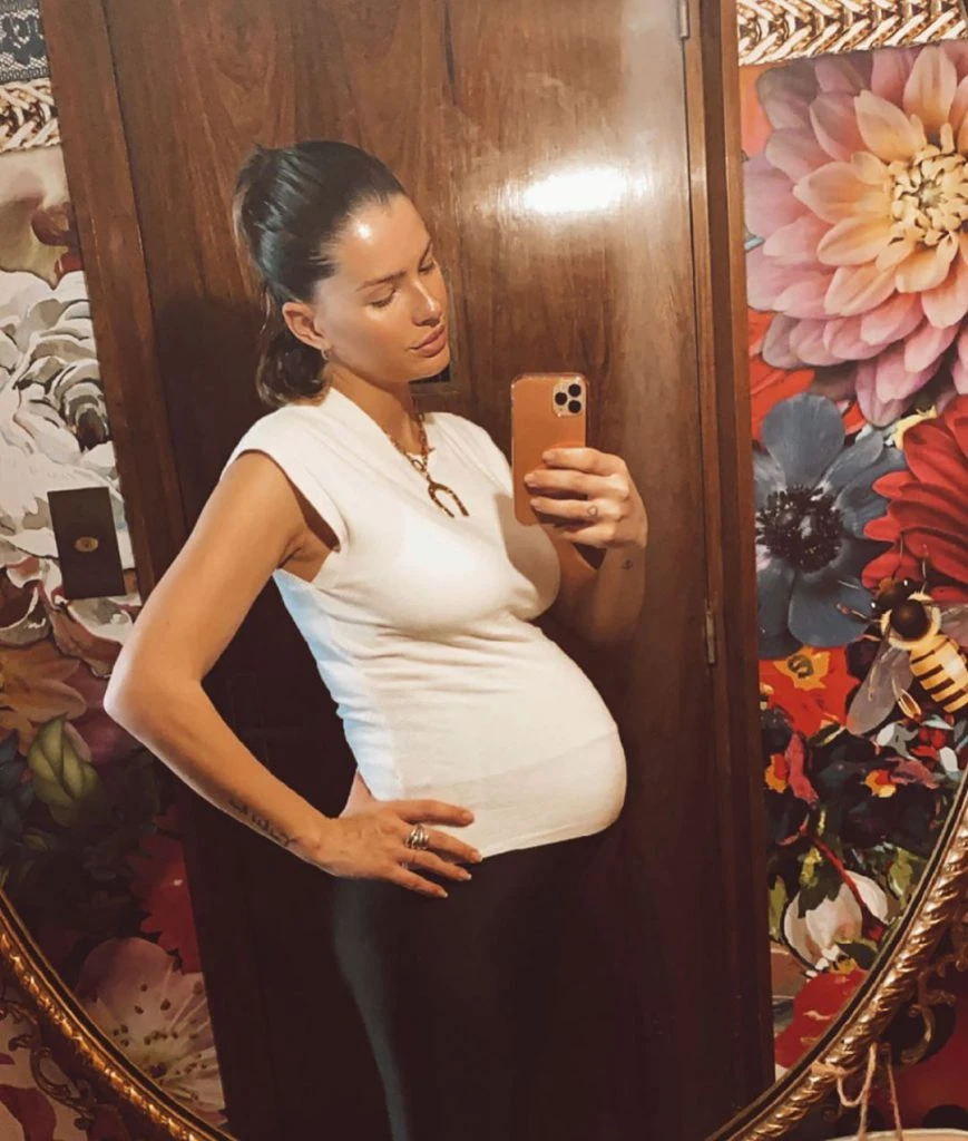 Su embarazo está cursando la semana 37, y aunque ni ella ni Benjamín hayan hecho público el sexo y el nombre, circulan rumores de que se trata de un varón y de que su nombre sería Carmelo, el de la ciudad que ellos visitaron en diciembre del 2019 (cuando habrían concebido al bebé).