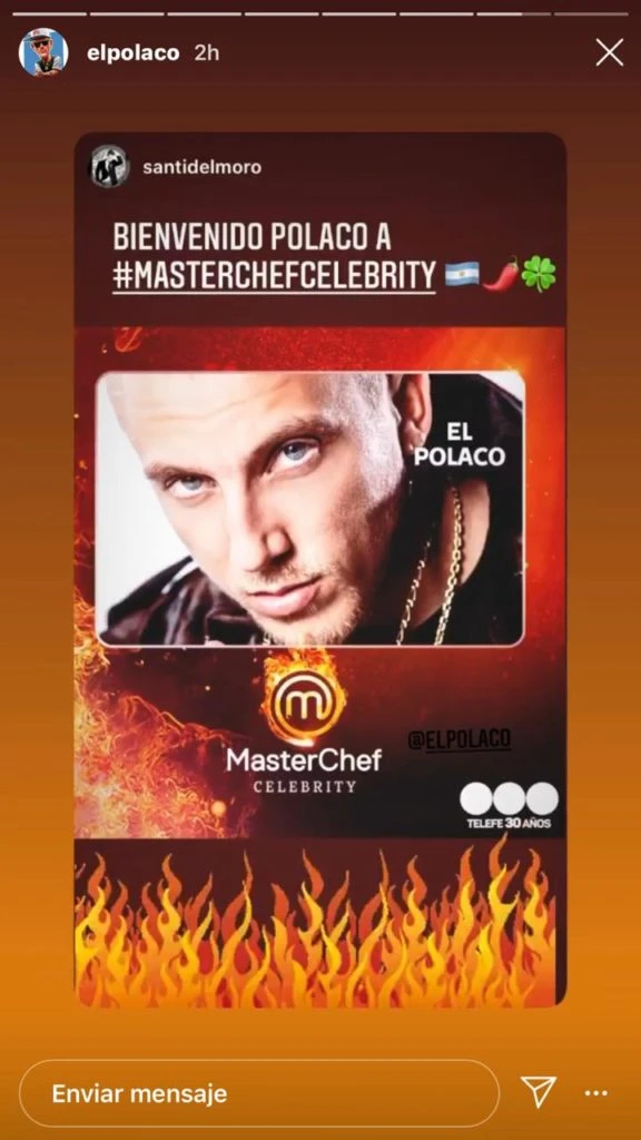 "Bienvenido El Polaco a MasterChef Argentina", posteó el community manager de Telefe y lo desafió: "Ritmo y baile seguro no van a faltar... ¿y para la cocina cómo te ves?".