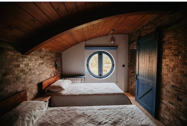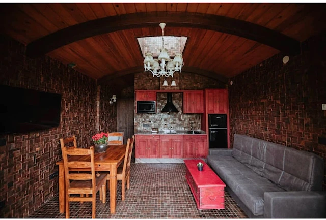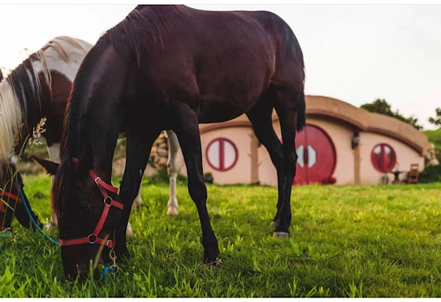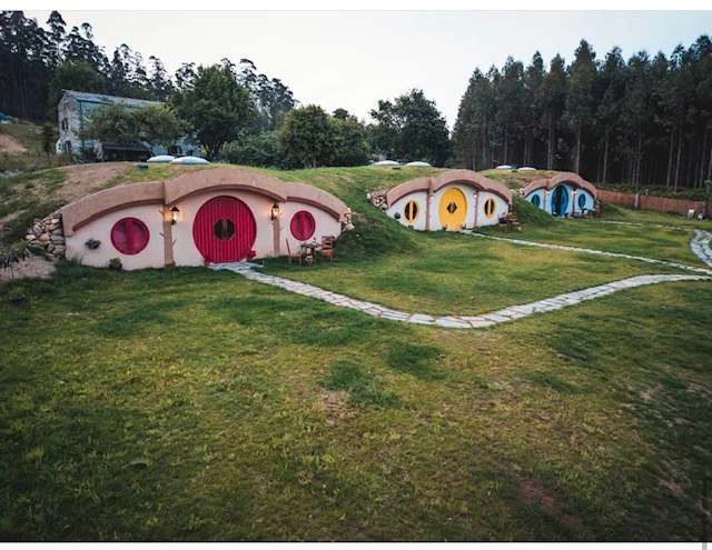 Puertas y ventanas redondas, techos curvos cubiertos de vegetación y mucha madera y piedra le dan un toque mágico a este lugar, que verdaderamente parece sacado de la adaptación de Peter Jackson de la Tierra Media.