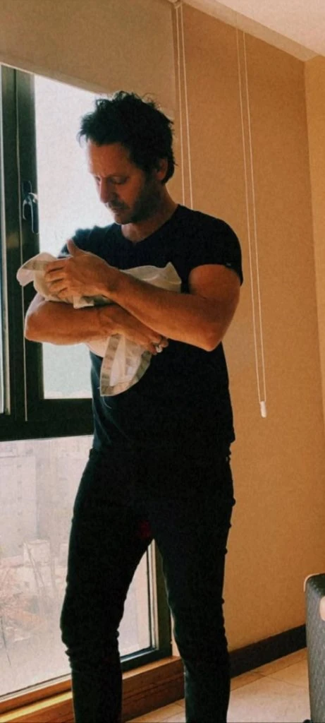 Unas horas antes, Benjamín compartió su primera foto con el recién nacido, que fue tomada nada menos que por la flamante mamá.