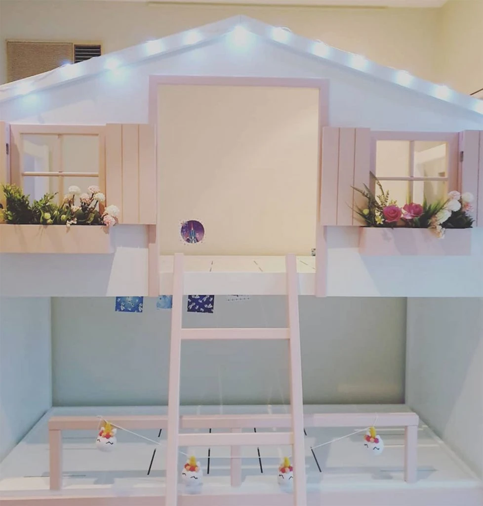 “Un pedido especial de @sangrejaponesa, Rufi me mando un mensaje y me pidió una cama de princesas con mucho rosa!!!! Gracias Euge sos una divina y tus hijas dos soles!!! A disfrutar de su cama casita!!!! ??❤❤??”, escribieron desde la cuenta oficial de la fábrica de camas.
