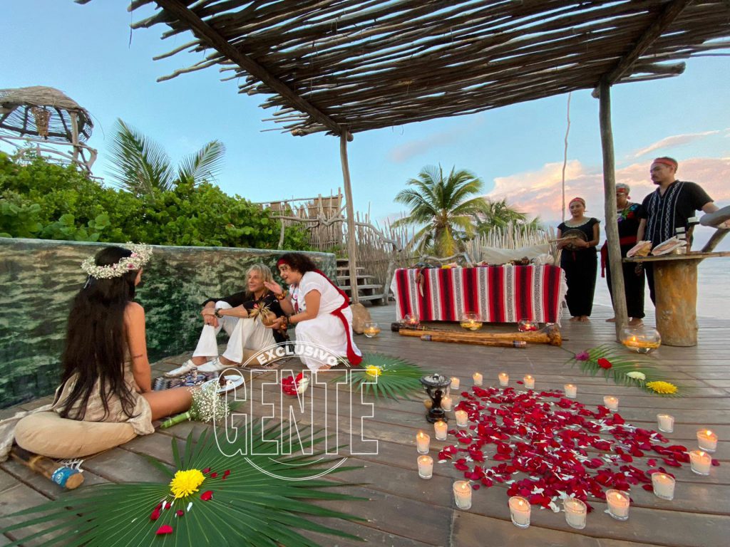 “Llegamos el viernes por la noche al hotel Azulik, y nos alojamos en una habitación increíble que da sobre la playa de Tulum. Con Claudio –Paul Caniggia (52)– estamos llevando una vida muy sana, por eso los días previos nos dedicamos a nadar, practicar yoga, aromaterapia y meditación. Fue mágico comprometernos en un ritual maya y ecológico, que se llamaba Copal, oficiado por María del Carmén, una chamán que puso en una tinaja incienso, resinas naturales, rosas y con el humo negro nos empezó a purificar de las malas energías”, contó a GENTE Sofía Bonelli (26) y agrego: "Todos los detalles del compromiso lo dejamos en manos de Gaby Álvarez, que es el Pr número 1 de Tulum".