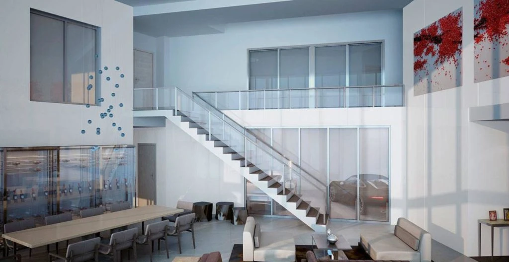 Puede sonar sorprendente, pero cada propietario puede llegar en auto hasta la misma puerta de su casa. De hecho, los vehículos son la llave del apartamento y están integrados en cada vivienda separados del espacio habitable por una simple pared de vidrio.