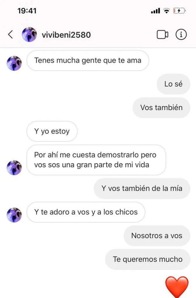 El sábado por la tarde, la modelo publicó una serie de diálogos privados con Viviana en donde deja expuesta la relación que mantenían, que aparenta ser afectuosa.
