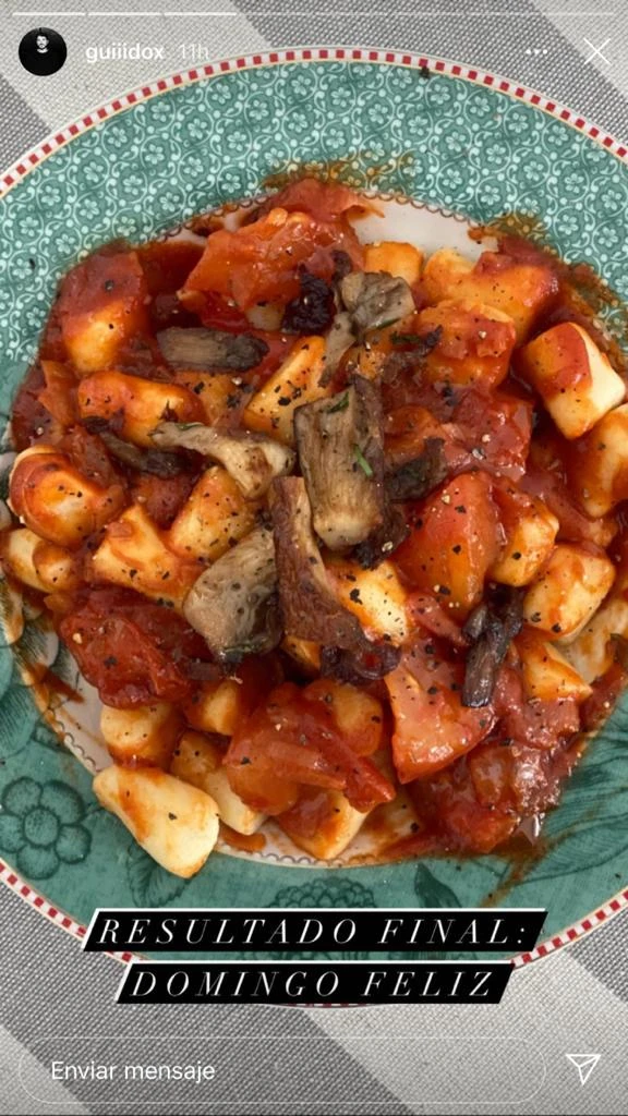 A continuación, las primeras citas que compartieron en sus redes y que Guido subió a sus historias el domingo pasado. Así, el ex de Mica se lució como chef: con un menú de ñoquis caseros y "salsa de tomates featuring gírgolas al romero".