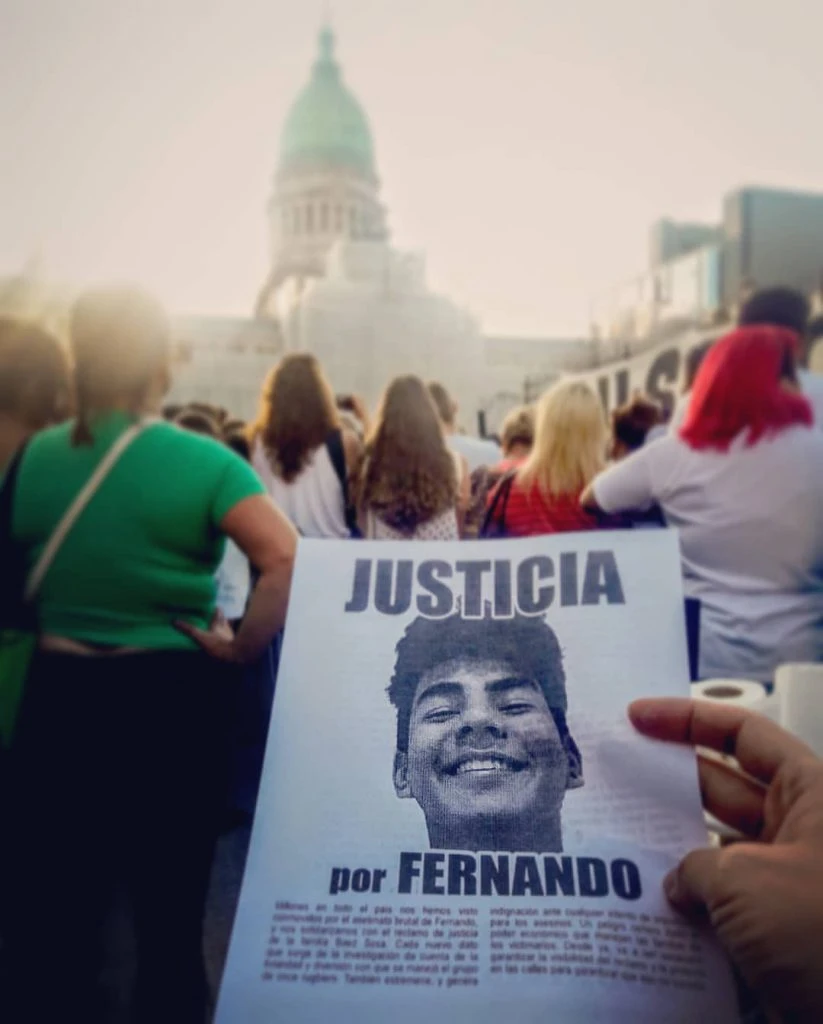 "Lo que le hicieron a mi hijo es terrible. Lo mataron a traición. Un chico que amaba la vida y quería ayudar a todo el mundo. Fernando ahora nos dará la luz necesaria para tener fuerza y luchar para que paguen lo que le hicieron a mi hijo", dijo la madre de Fernando desde el escenario que se montó frente al palacio legislativo.