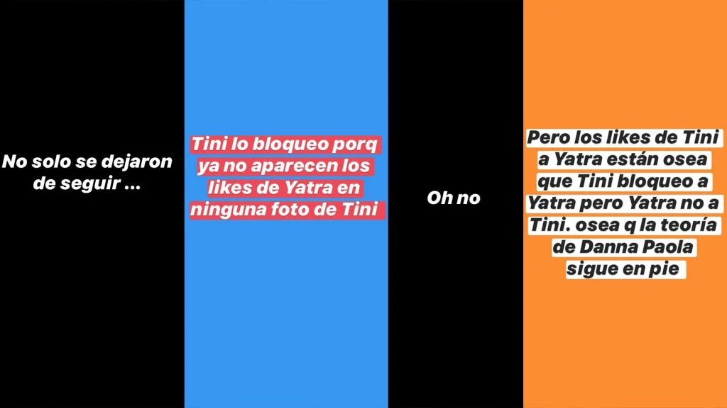 Pero al parecer, las diferencias entre ambos son más profundas ya que la cantante argentina bloqueó al músico colombiano de sus redes sociales. Él ya no puede ver quién da like, comenta o interactúa con Tini.