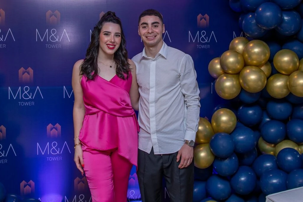 Miguel Almirón llegó acompañado por su esposa Alexia Notto y su hijo. La pareja pisó nuevamente su tierra natal para inaugurar oficialmente el proyecto M&A Tower, un complejo de apartamentos ubicado en el barrio Sajonia de Asunción.