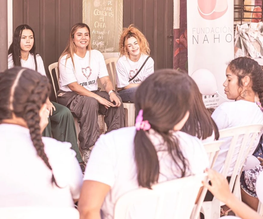 A través de su Fundación Con Cora, la colombiana Karol G envío a sus representantes para generar un acercamiento con la fundación nacional Naho, dedicada a brindar ayuda adolescentes madres en situación de pobreza en el área del Bañado Sur, Asunción.