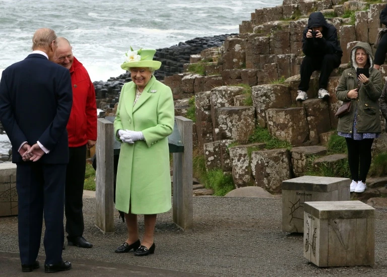 La reina Isabel II y el príncipe Felipe el 28 de junio de 2016 en Bushmills, Irlanda del Norte (AFP - Paul Faith)