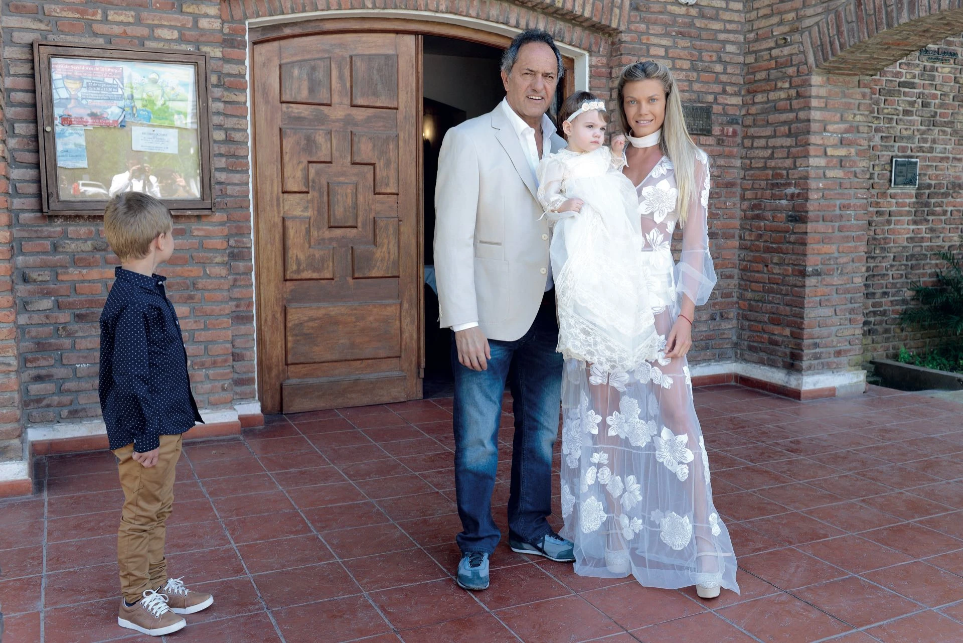 Fue un bautismo discreto, íntimo, tal como lo imaginaron los papás de Francesca, Daniel Scioli (61) y Gisela Berger (29). Y fue, también, la primera vez que el actual diputado nacional conoció a gran parte de la familia de su mujer: desde Córdoba llegaron sus hermanos, Ivana y Luciano, sus sobrinos Antonella e Ignacio y Susana, la abuela de la modelo.