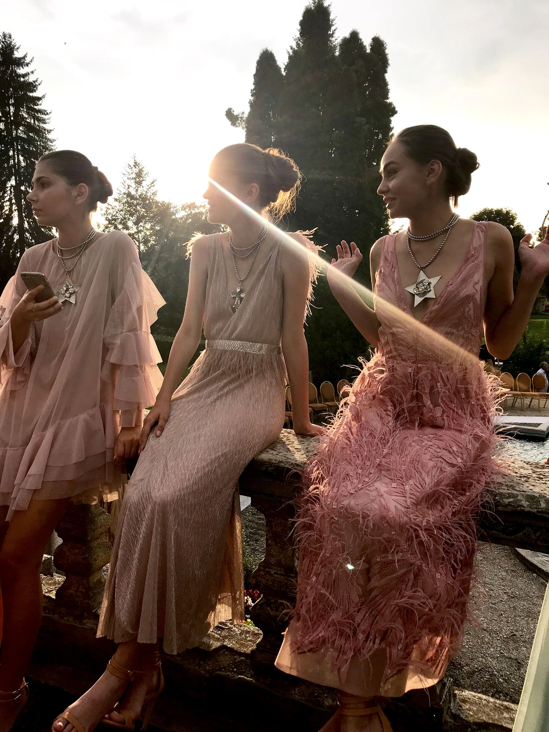 Los preparativos frente a la imponente construcción europeaVestidos en versión corta y extra largoLos pasteles y el glitter dominan las tendeciasLas modelos listas para mostrar los diseños argentinosPía Carregal junto a las modelos en la pasada final