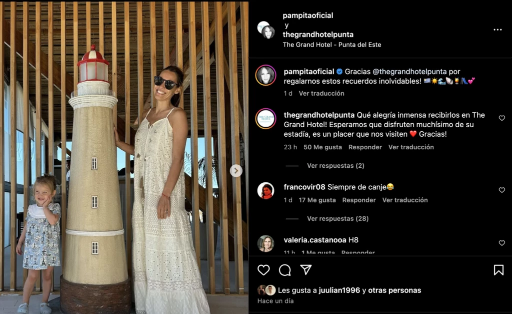 Si bien la mamá de Magnolia, Rufina y Amancio se encontraba disfrutando de la temporada esteña en compañía de quien señalan como su nueva pareja, el cantante argentino Lauty Gram, la madre de Bautista, Beltrán, Anita y Benicio, volvió a la ciudad uruguaya por compromisos laborales, esta vez sin su esposo, sino junto a su pequeña hija: un viaje de chicas.