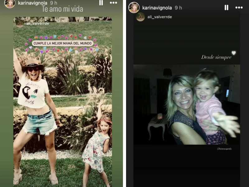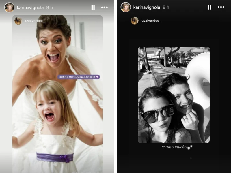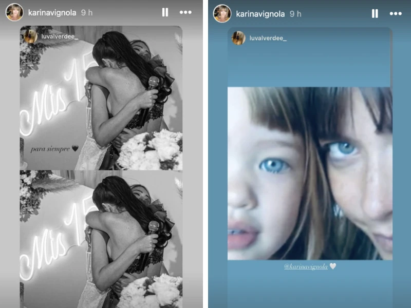 En una segunda historia que compartió la menor, se puede ver a Vignola con una Alina de 2-3 años cargada en sus brazos, acompañado por un fragmento de una oración: "Desde siempre...", que es completada en una tercer historia con una postal más actual de ambas con la que cierra el ciclo: "Para siempre".