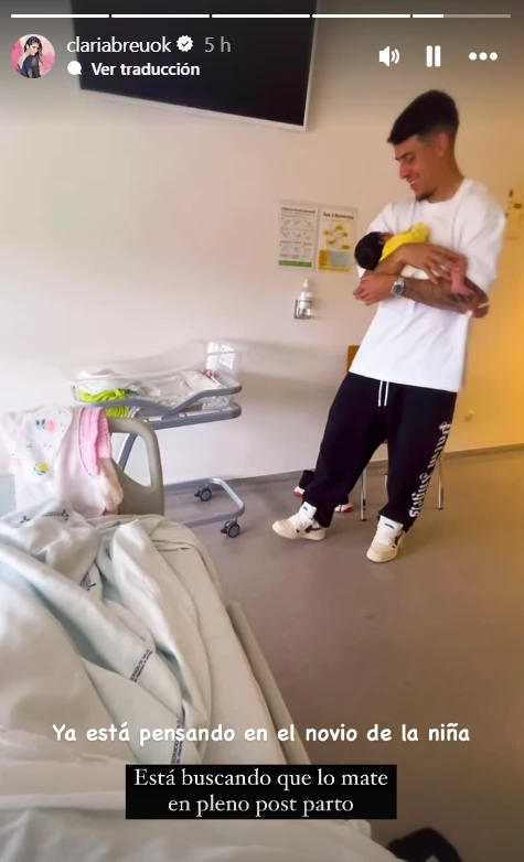 Sin embargo, el futbolista sorprendió al responderle, entre risas, que no hay hombres fieles, y Clarisa le mostró que estaba filmando. En la historia, la influencer escribió: "Ya está pensando en el novio de la niña... Está buscando que lo mate en pleno post parto".